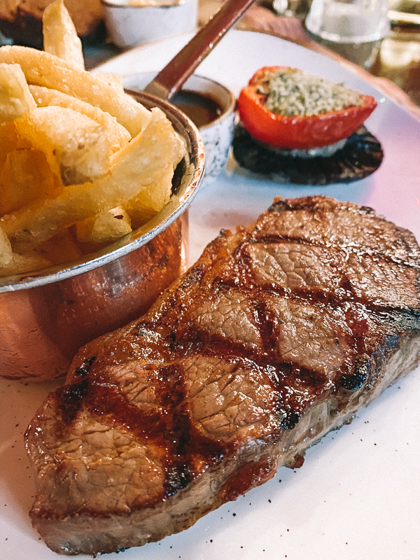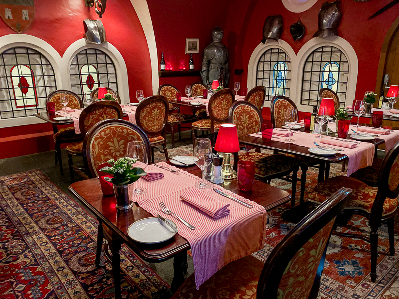 The Dungeon, restaurante com referências medievais que fica no piso térreo do castelo. Pedimos uma carne maturada por 21 dias que estava simplesmente divina.