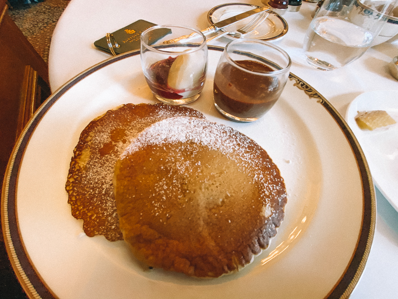 O café da manhã majestoso também é servido nesse mesmo restaurante e a noite para jantar no George V. existe um código de vestimenta. Todos os homens precisam usar paletó e eles pedem para que não seja retirado, assim, mantendo a luxuosidade do local.