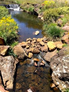 Em uma dessas caminhadas encontramos um pequeno riacho bem charmoso e perto da casa. Para outro lado é possível ver um espaço repleto de araucárias.