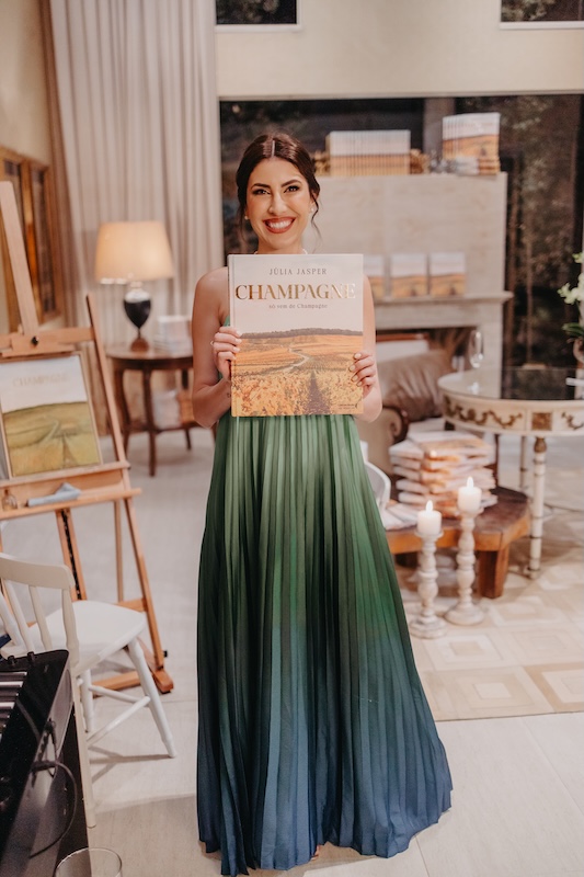 Júlia Jasper é escritora, especialista em vinhos e comunicadora cultural com uma trajetória construída entre países, vinhedos e histórias que precisavam ser contadas. Viveu no Brasil, Irlanda, Alemanha, Estados Unidos, Malta e Chile, visitou 46 países — e foi dentro das caves e vinhedos de Champagne que encontrou o tema para essa obra pioneira no Brasil.