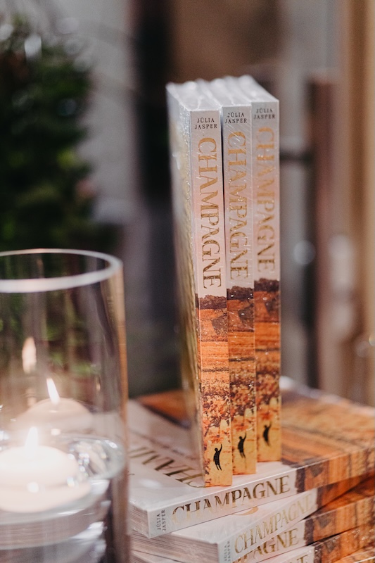 O livro começou a ganhar forma quando Júlia Jasper deixou seu cargo de gerente global de marketing na Alemanha para viver um período sabático — que ela passou dentro dos vinhedos, caves subterrâneas e maisons da própria região de Champagne. Não foi uma pesquisa feita à distância: foi uma imersão completa, que resultou em mais de 300 páginas sobre terroir, uvas, história, produção e os bastidores das maiores casas da região, como Moët & Chandon, Ruinart, Taittinger, Veuve Clicquot, Gosset , Ayala, entre outras.