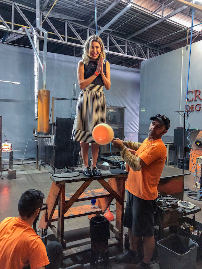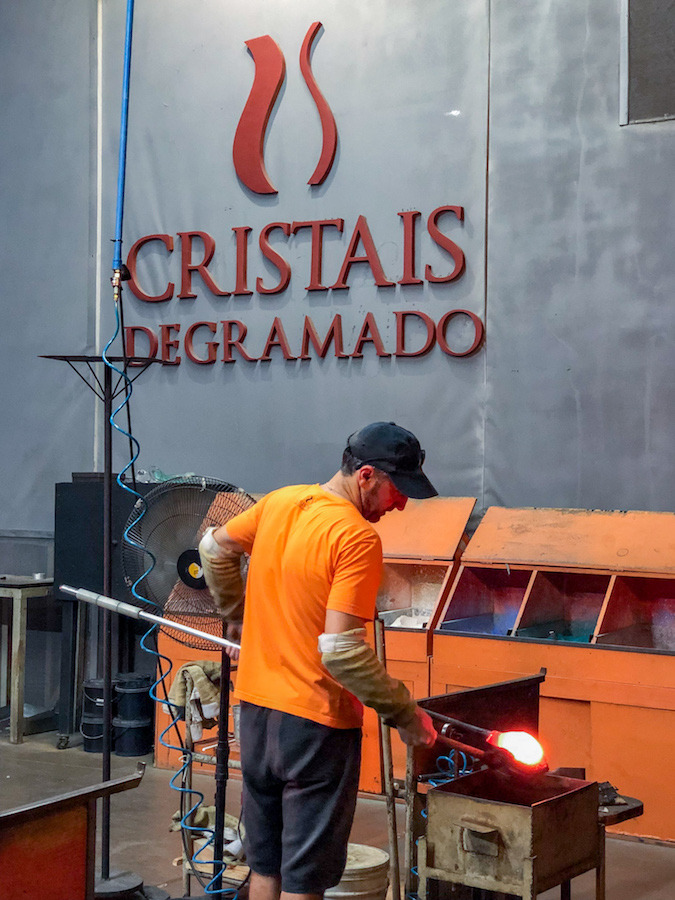 Sentir o calor no rosto, ver o mestre vidreiro com suas mãos experientes manuseando aquela massa inflamada à 1200ºC e lentamente observar a transformação em Cristal.