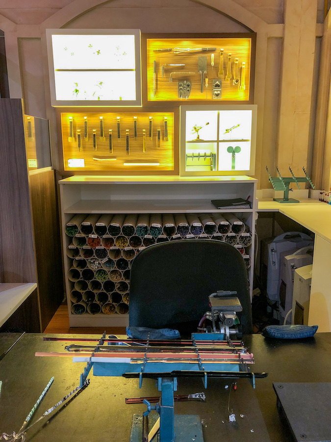 Além de poder ver tudo isso de pertinho, dentro da loja tem outros mestres artesãos que fazem outras técnicas ao vivo, como lapidação, por exemplo.