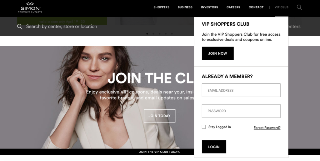 Primeiro você entra no site do outlet AQUI. Clica na aba VIP CLUB e depois em Join Now.