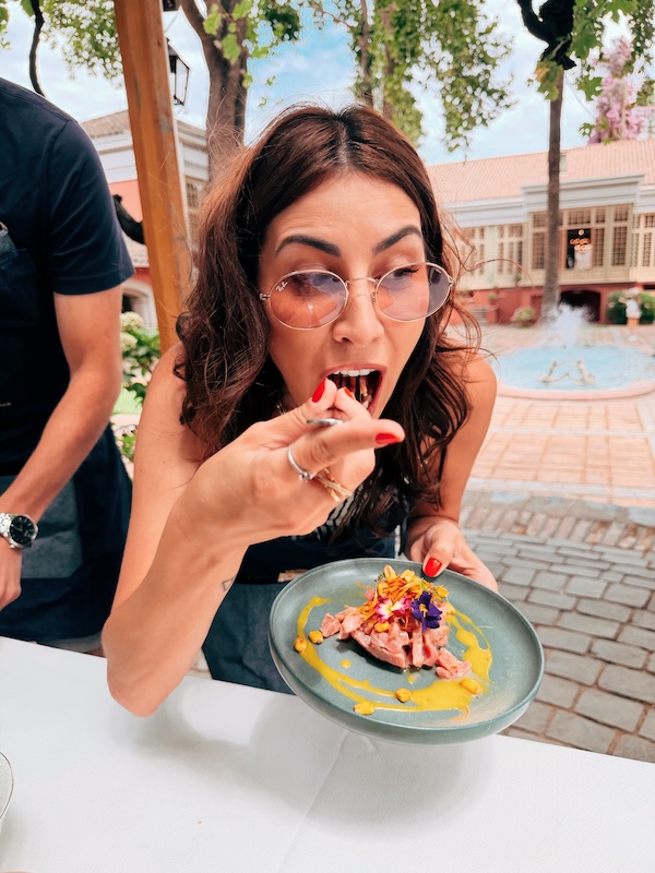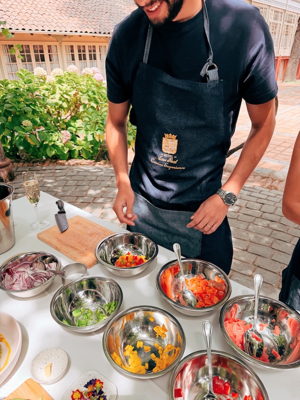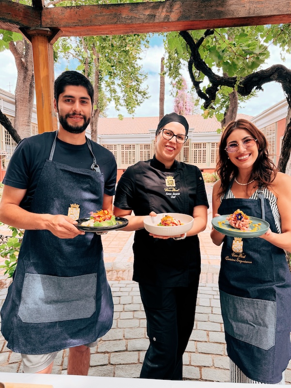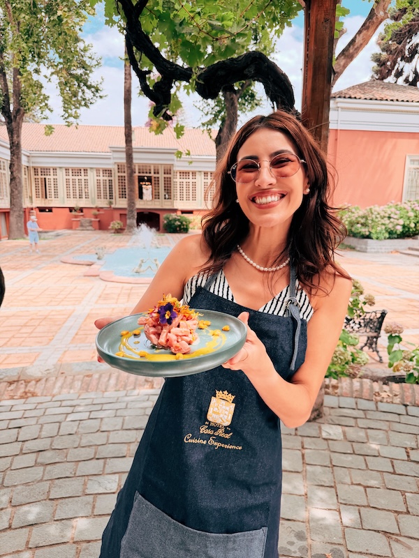 Durante nossa estadia, fizemos diferentes tipos de passeios, conhecemos as caves centenárias da Santa Rita, provamos os vinhos ícones da casa, além de experiências pensadas para serem vividas com tempo. Tivemos vinhos ao pôr do sol com alguns exemplares especiais da Vinícola Carmen que também faz parte do grupo da Vinícola Santa Rita e diversos rótulos da Santa Rita. Piquenique nos jardins, jantares harmonizados com vinhos premium e ultra premium, além de uma experiência gastronômica especial com uma aula exclusiva com a chef Karen Álvarez, onde aprendemos a preparar um ceviche enquanto conversávamos sobre o quão mágico e encantador é poder estar nesse local, e claro, com muito espumante Extra Brut da Viña Carmen.