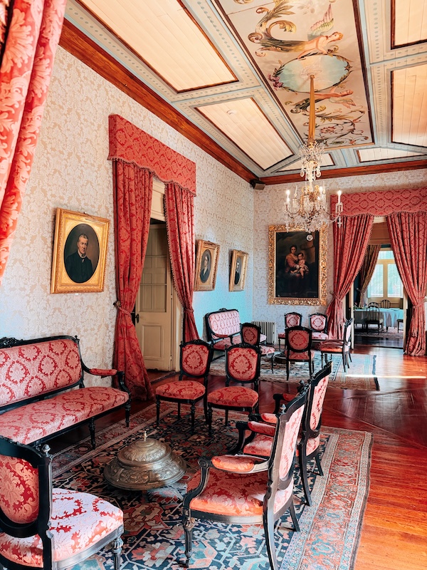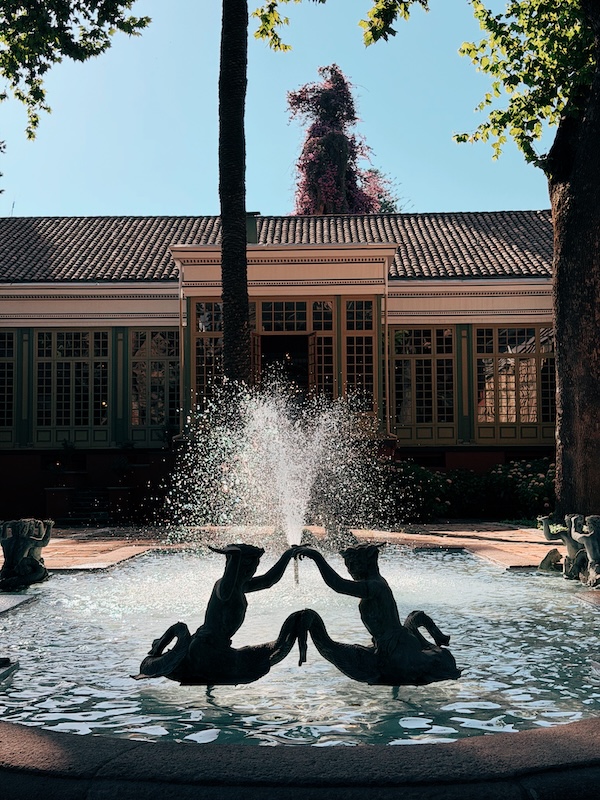 A casa principal, antiga residência de verão do fundador, permanece com sua estrutura original, seus salões, corredores e áreas comuns preservados. O hotel não foi pensado para ser apenas contemplado. Pelo contrário: tudo pode ser tocado, usado, vivido. Você pode sentar nos sofás, caminhar pelos corredores, atravessar os jardins e explorar os espaços como quem está em casa. Os hóspedes do hotel são os únicos visitantes que podem percorrer a propriedade livremente.