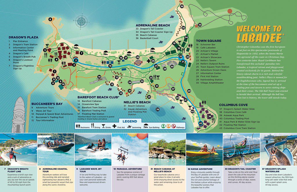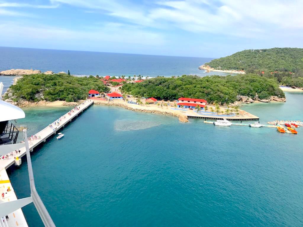 O lugar é realmente o paraíso, águas cristalinas em vários tons de azul e água super quente. Perguntei para uma moça que estava trabalhando no local e ela disse que podia trazer a família nos dias de folga e que a empresa pagava algo em média de 12 dólares para o governo por cada turista que visitava Labadee.