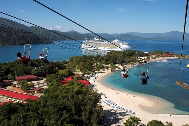 Chegamos até Labadee em um cruzeiro, Harmony of the Seas, pela Royal Caribbean. Essa península é alugada para a Royal Caribbean até 2050 e só quem viaja nos seus cruzeiros ou trabalha no local tem acesso.