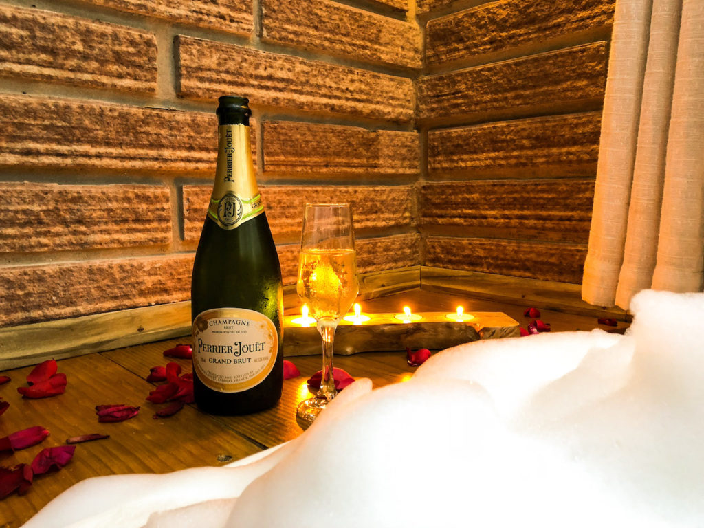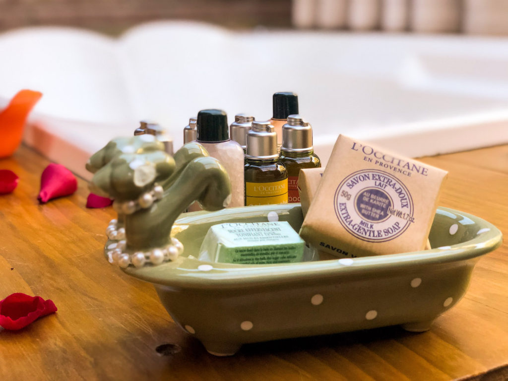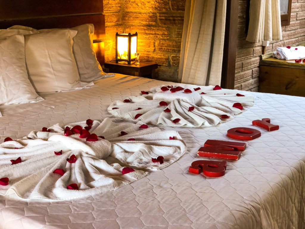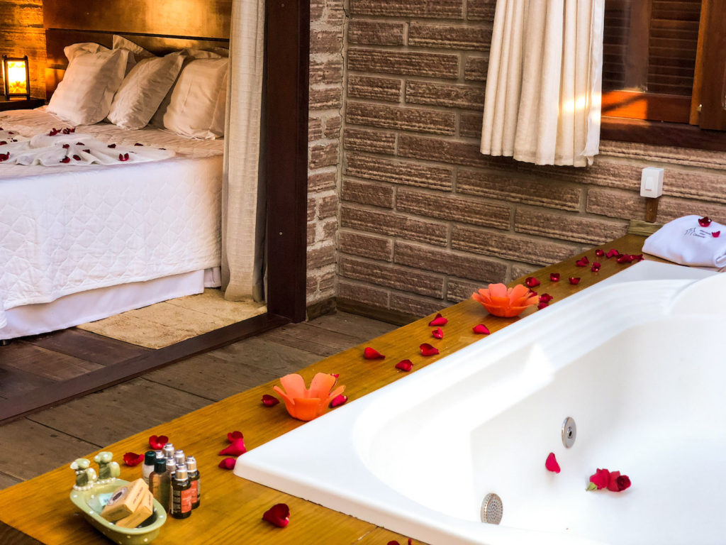 Nós nos hospedamos no Chalé nº8 e nossa recepção foi maravilhosa. Romantismo em cada detalhe. Pétalas de flores por todos os lados, uma espumante no ponto nos esperando, os amenities do quarto eram da famosa e super cheirosa L´occitane en Provance, chocolates, frutas, em fim, estávamos nos sentindo muito bem e aproveitamos cada detalhe.