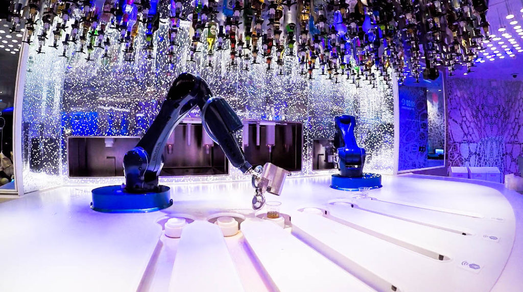 Quem aí também adora um joguinho no cassino? Outra coisa super legal é o bar biônico, são robôs que preparam o seu drink. Pode escolher entre uma seleção ou criar sua própria bebida. dá para “perder” um tempo por lá.