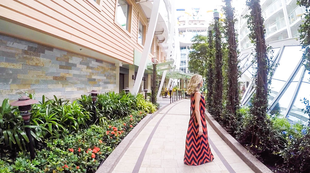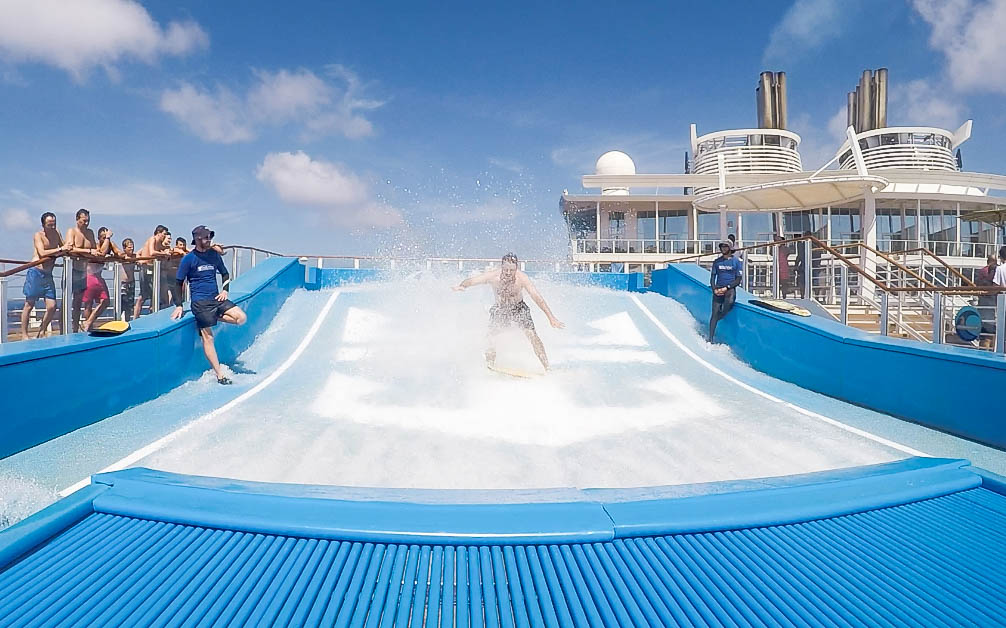 Tem tirolesa, quadra de esportes, minigolfe, spa, parede de escalada, pista de corrida, flowrider (são dois simuladores, um para surf e outro bodyboard), patinação no gelo (tentei ir duas ou três vezes, mas estava sempre cheio), Ultimate Abyss (maior escorregador em alto mar, equivalente à um prédio de 10 andares), carrossel, academia, várias aulas de ginástica, entre outras. São tantas opções que é praticamente impossível conseguir fazer todas as atividades que o navio oferece.