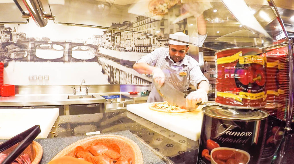 O jantar no restaurante “My time Dining” está incluído no “pacote”, é o mais chic e tinham comidas excepcionais. Comi uma lagosta na manteiga, repeti três vezes , o escargot também era saborosíssimo. No promenade 5º andar tem uma pizza ótima que funciona praticamente 24h. Os cafés da manhã e almoços tinham tantas opções e eram tão fartos que a gente não sabia o que escolher primeiro (eu passava horas nos restaurantes), só de lembrar das comidas me dá uma saudade, rsrsrrs.