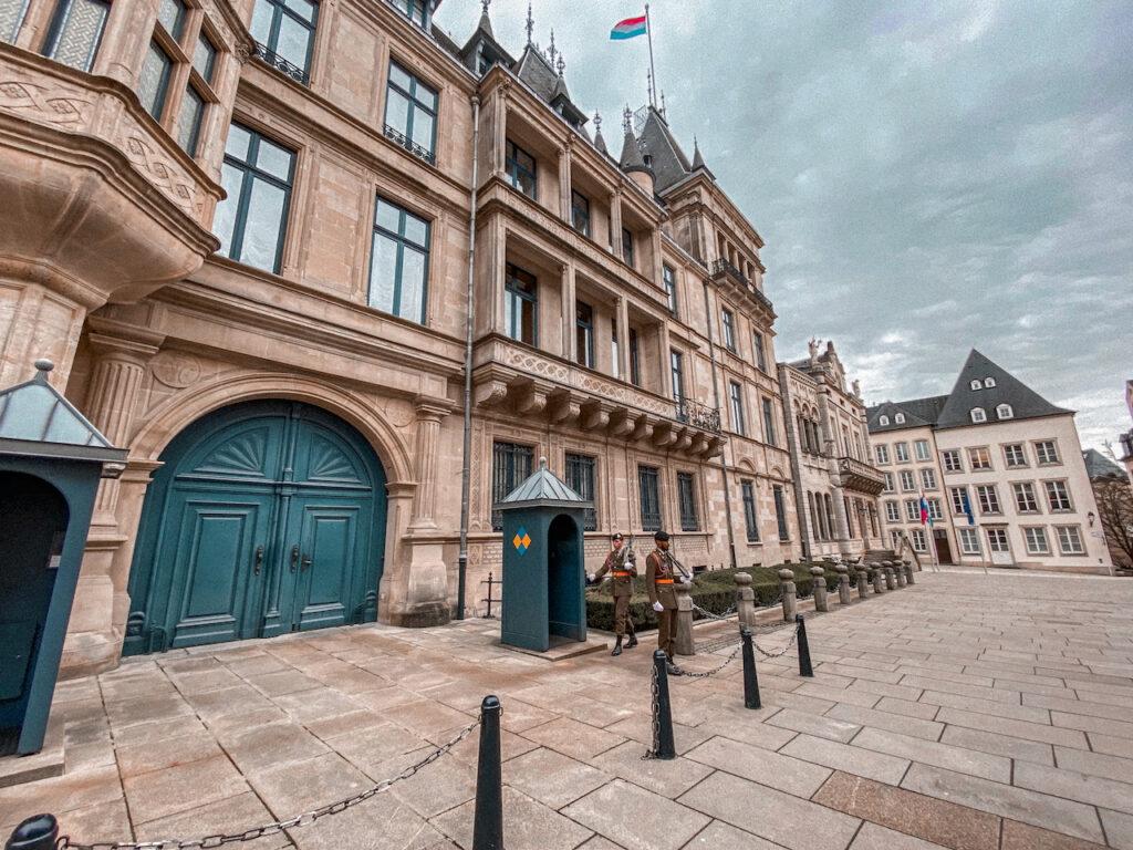 A residência oficial do Grão Duque de Luxemburgo fica bem no meio da cidade e do centrinho histórico. A construção é da época da renascença no século XVI e durante o verão é possível entrar no Palácio, mais ou menos do período que vai do meio de julho até o final de agosto.