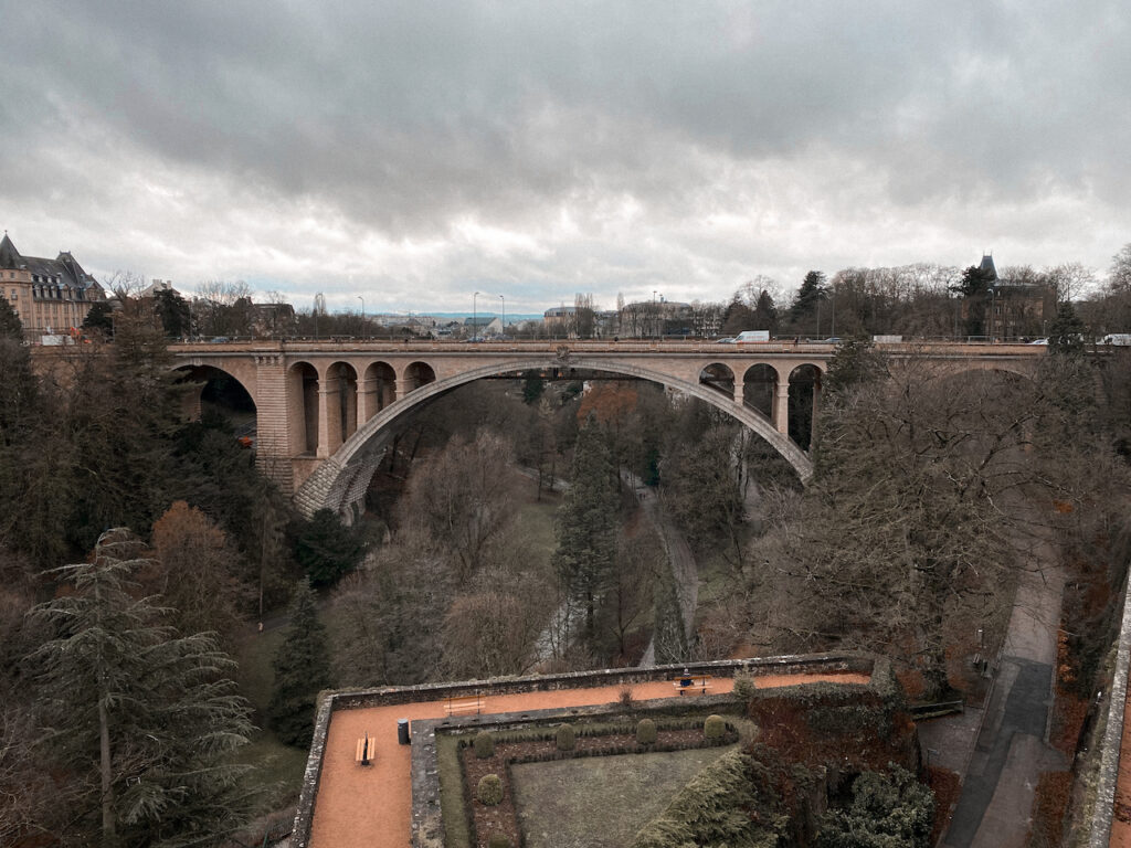 Nós descemos o elevador, andamos por todo o bairro da cidade baixa, por baixo do Viaduc (um viaduto de 45 metros de altura construído em 1859 para conectar o centro da cidade até a nova estação ferroviária) e depois subimos para as casemates.