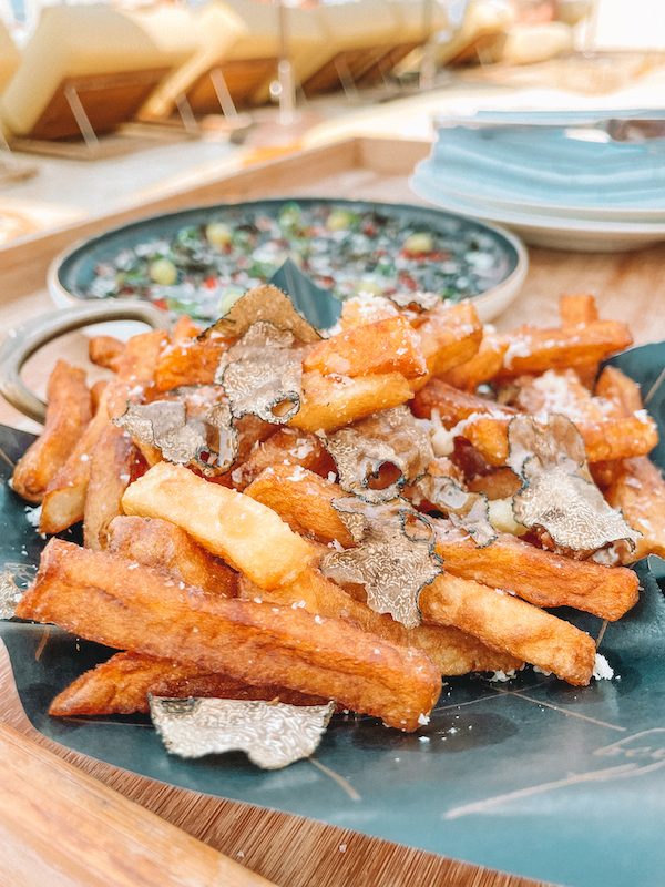 Precisa entrar no seu pedido para um dia curtindo o lugar, o carpaccio, as batatas fritas com lascas de trufa e de sobremesa o suflê de chocolate amargo com folhas de ouro. Tudo de comer rezando.