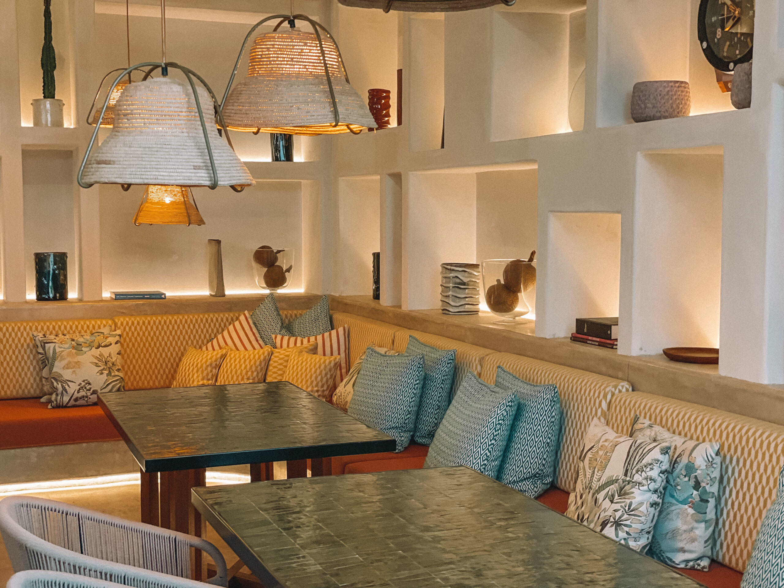 A piscina de borda infinita traz um ar sofisticado ao lugar e uma vista sem igual, principalmente ao pôr do sol. Quanto às refeições, o local oferece almoço, que é servido das 10h às 15h, e jantar das 19h até 22h.