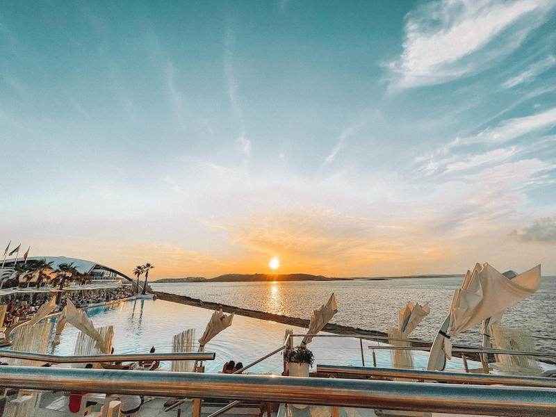 Visitamos o Café del Mar em setembro, o dia de sol estava incrível, DJ, música animada, muita diversão. Em setembro já começa a esfriar um pouco na ilha e no fim do dia a piscina já fica mais gelada. O ponto auto do dia foram os brindes ao pôr do sol. A piscina é enorme e no esquema beach club, ótima para curtir e tomar bons drinks.