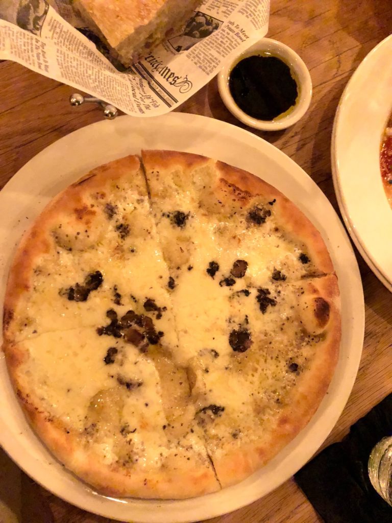 O Valor é um pouco mais alto que o anterior. De entrada um delicioso pão quentinho com azeite de oliva e balsâmico. Prato principal pedi uma pizza que por sinal foi a melhor que já comi até hoje, com 3 tipos de queijos (robiola, fontina e um queijo trufado), a pizza ainda vinha com azeite trufado e lascas de trufa por cima, só de lembrar quase babei aqui no teclado. Realmente sensacional 30 dólares. Meu marido pediu uma lasanha e disse que estava incrível também, 20 dólares.