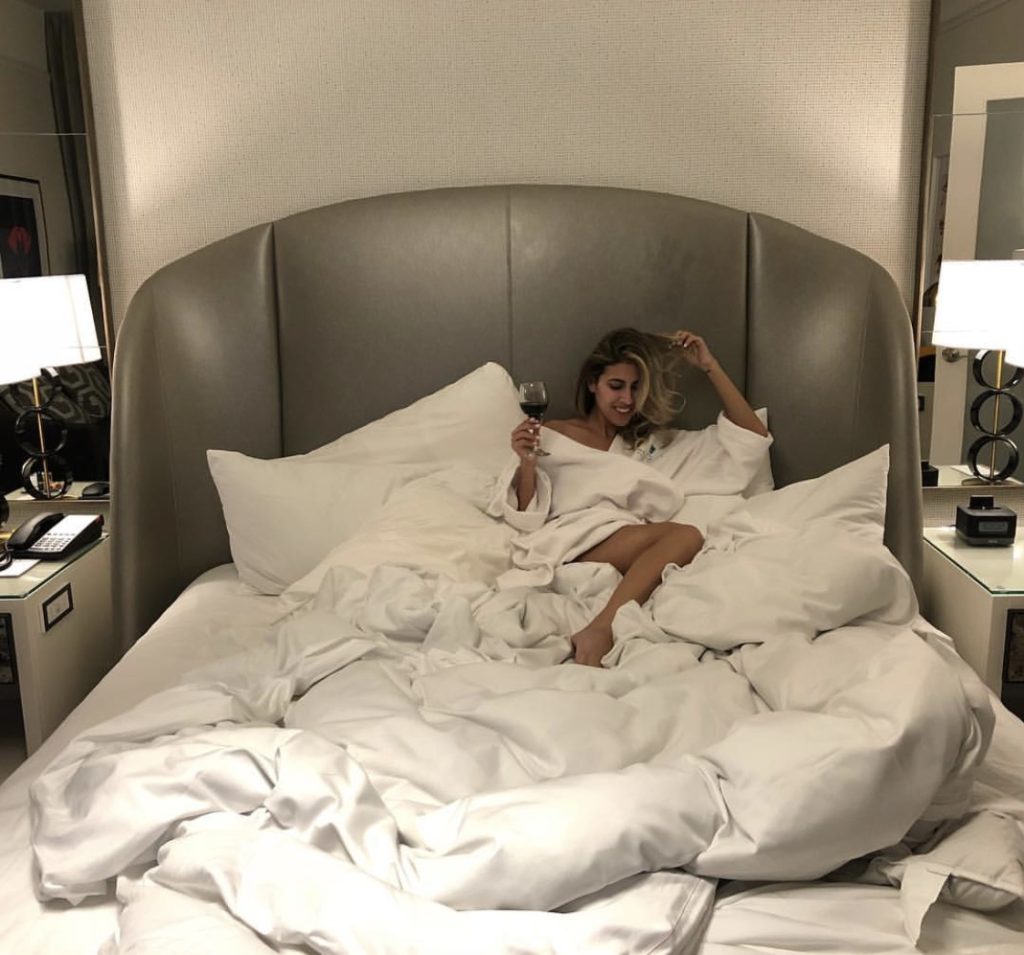 (Pensa se eu estava feliz? Depois de um dia conhecendo lugares incríveis, essa cama maravilhosa e uma taça de vinho. Alegria define).