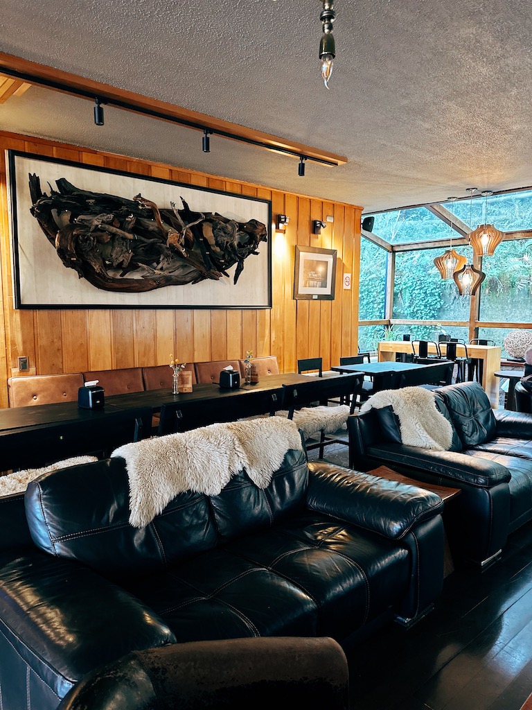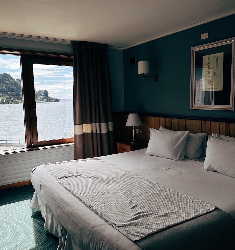 A hospitalidade da equipe é um dos grandes diferenciais do hotel. Todos os funcionários, desde a recepção até o serviço de quarto, cumprimentavam com um sorriso caloroso, refletindo o autêntico espírito sulista. Não abria mão de tomar meu cappuccino com vista para o Osorno no bar do hotel, sempre atendida com simpatia pelos queridos Roni que me deu várias dicas da região e Diego Silva — que, adorei que ele falava português e estava sempre pronto para uma conversa amigável. Essa atenção aos detalhes faz toda a diferença na experiência. (Os dois foram as pessoas que mais tive contato, mas realmente todos que cruzaram o nosso caminho foram muito simpáticos, e gosto de frisar isso, porque o atendimento acolhedor é um grande diferencial).