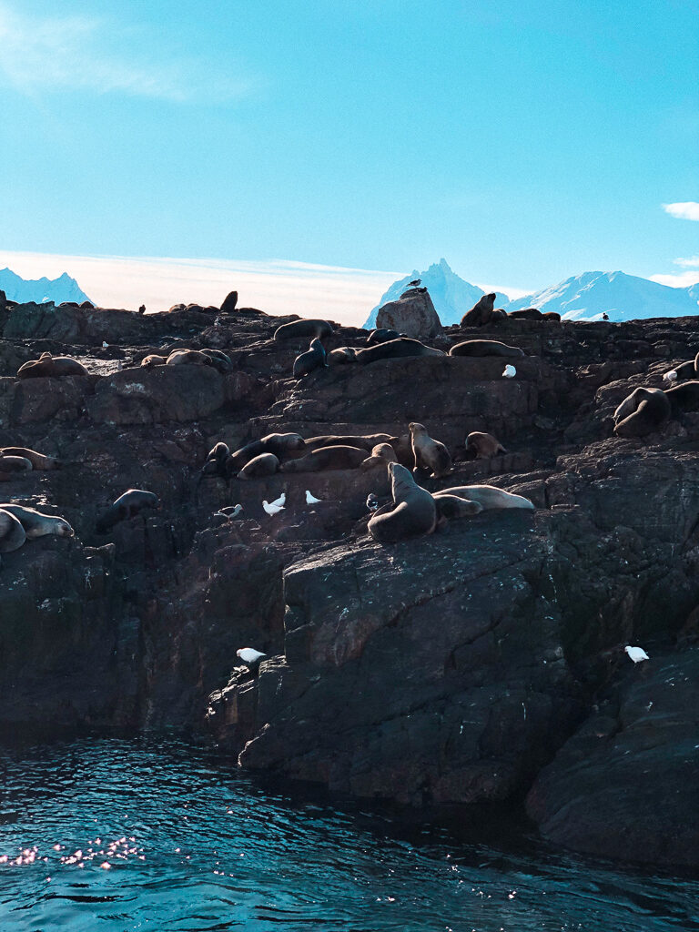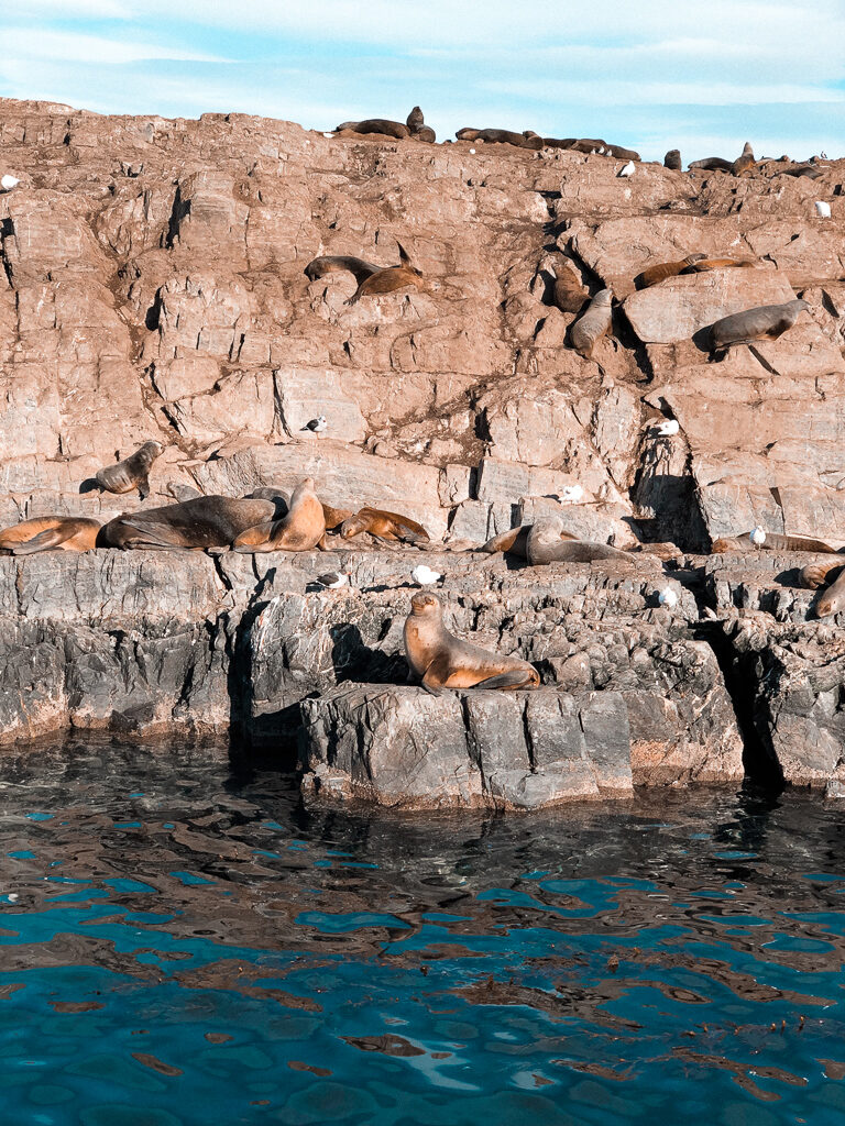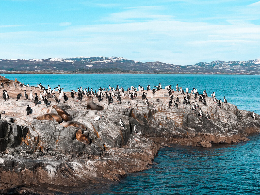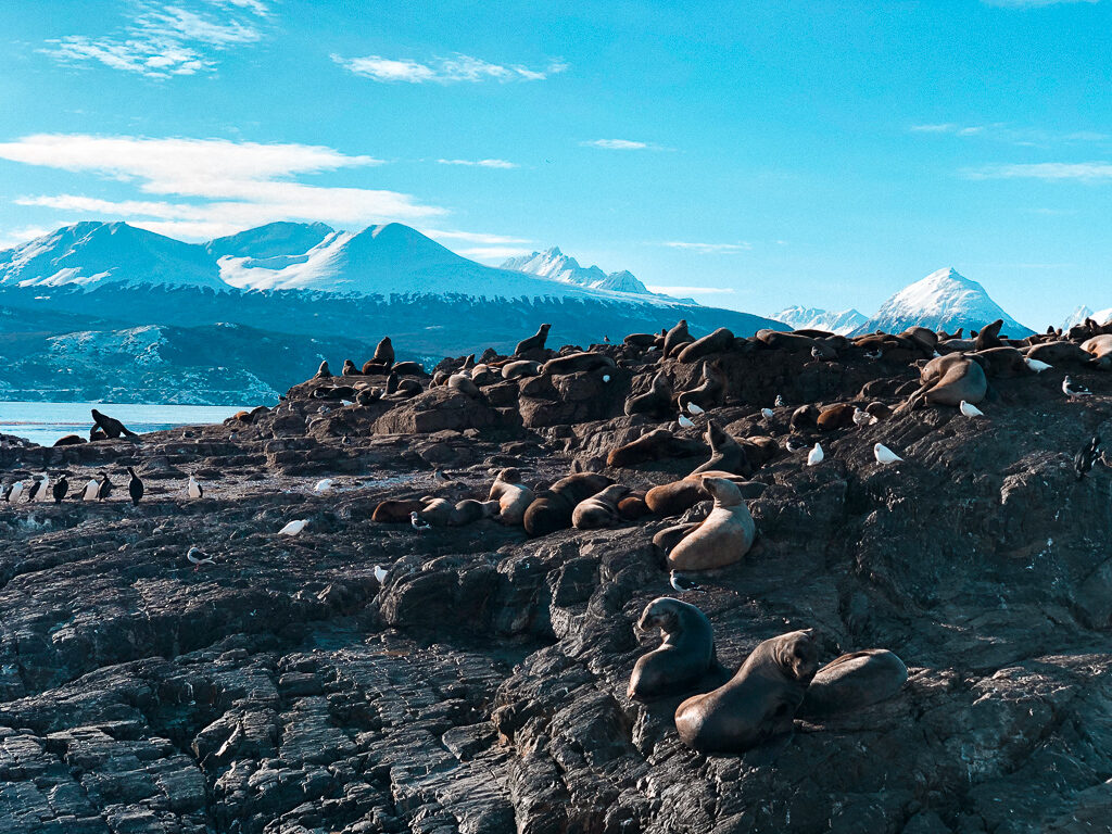 Durante a navegação pelo Canal Beagle, circundamos a ilha dos lobos marinhos e o barco chegou bem pertinho (vimos uma mãe amamentando o filhote e foi lindo).