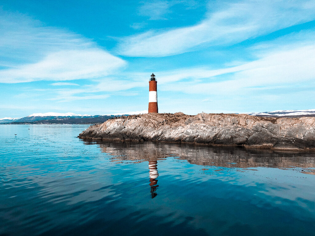 Após os pássaros e os lobos marinhos foi a vez do famoso Farol Les Eclaireurs, um símbolo da cidade de Ushuaia. A torre tem 11 metros de altura e é pintada em listras brancas e vermelhas. Apesar de não ser, o farol é conhecido como o último farol do fim do mundo.