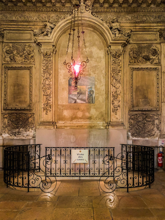 Pela manhã havíamos caminhado pele centro da cidadezinha de Beaune e durante a tarde caminhamos por baixo da superfície. Foi uma experiência e tanto. Em várias parte do trajeto, tem placas indicando os lugares que estaríamos na cidade, naquele ponto específico.