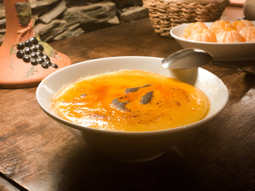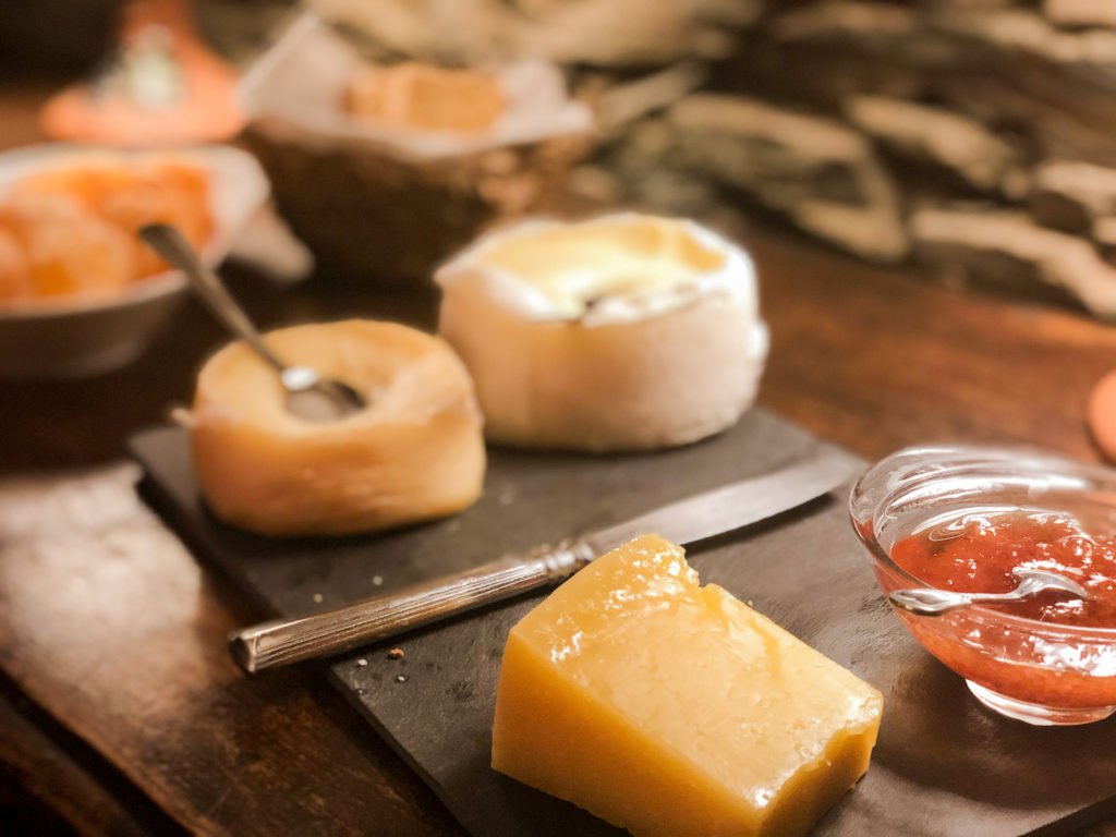 Nosso almoço foi reservado na sala construída de xisto. Uma sala com mais de 400 anos de idade, é incrível né? O dia estava um pouco nublado e frio, e aquela sala acolhedora e quentinha, com os barulhos da madeira estalando na lareira caiu muito bem.