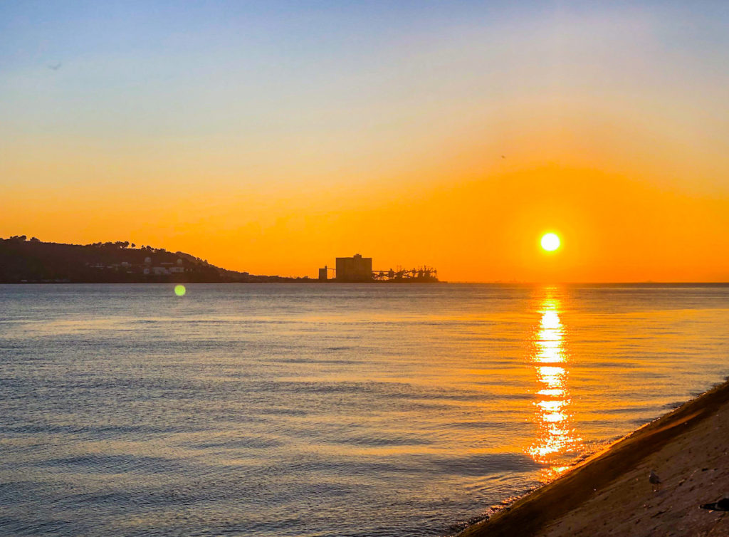Os monumentos ficam em tons dourados, os raios de sol no Rio Tejo são um espetáculo e você ali sentadinho na beira do rio apreciando tudo isso.