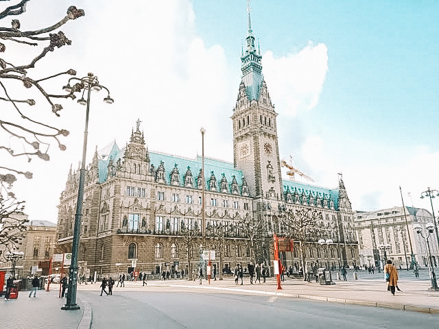 É o prédio onde está localizada a prefeitura de Hamburgo, se trata de um edifício elegante e maior do que o próprio Palácio de Buckingham. São 647 ambientes na construção neo-renascentista que conta com muitos detalhes, tanto em seu interior, quanto no exterior. Cada canto do Rathaus tem algo lindo e interessante e a parte externa fica ainda mais bonita com a iluminação que tem à noite.