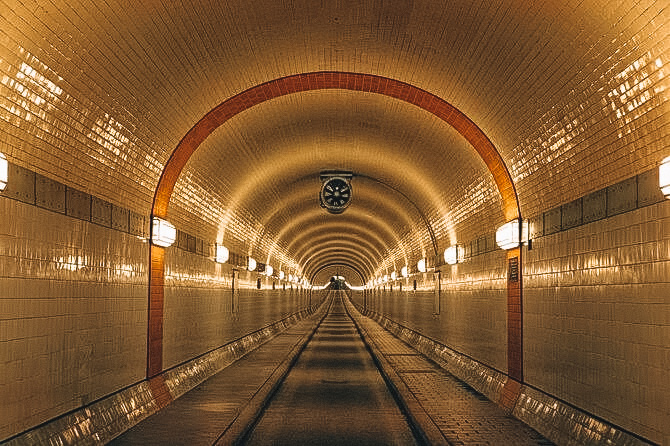 É um túnel subterrâneo para carros, pedestres e bicicletas, que passa debaixo do Elba.