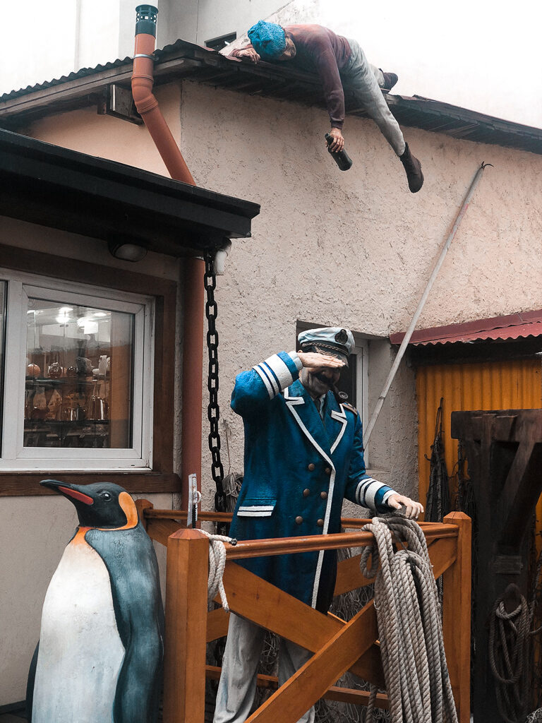 Na Avenida San Martin tem uma Galeria Temática bem bacana. Na parte da frente é uma loja com todas as “quinquilharias possíveis” e na parte de trás tem várias estátuas, imagens, etc. que contam um pouco sobre a história de Ushuaia.