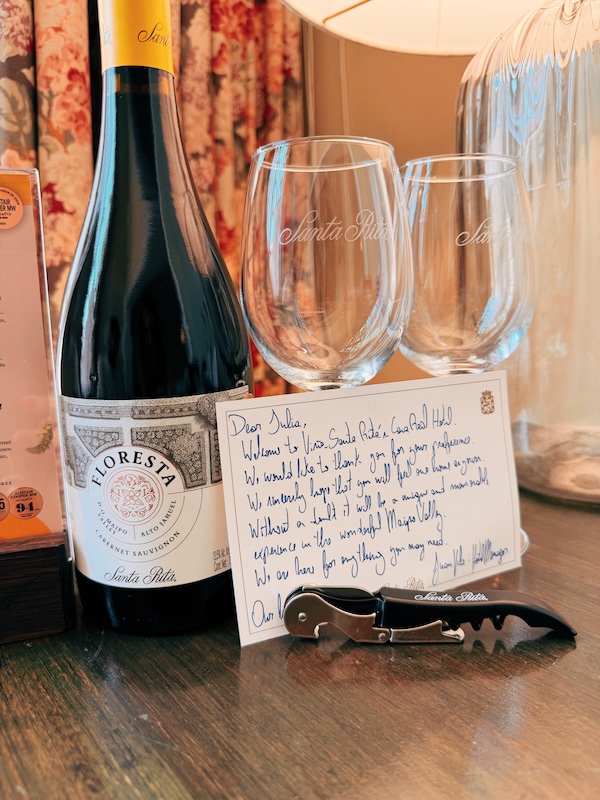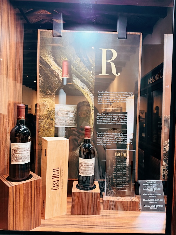 Além dos rótulos da própria Viña Santa Rita, durante a estadia no Hotel Casa Real e os tours pela propriedade, também degustamos vinhos da Viña Carmen, vinícola que integra o mesmo grupo e ocupa um papel central na história do vinho chileno.