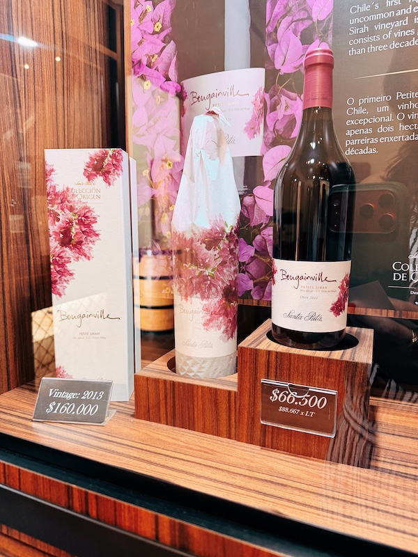 Um dos rótulos mais singulares degustados na Viña Santa Rita, o Bougainville Petite Sirah é reconhecido como o primeiro Petite Sirah de alta gama do Chile. O vinho nasce de um vinhedo exclusivo de apenas 2 hectares, em Alto Jahuel, no Vale do Maipo, com videiras de mais de 30 anos.