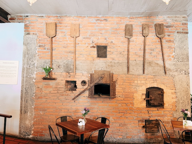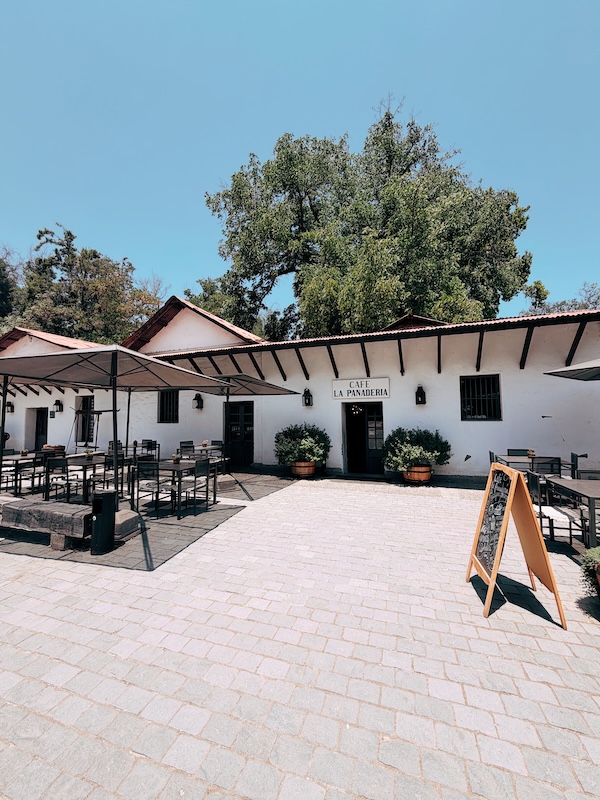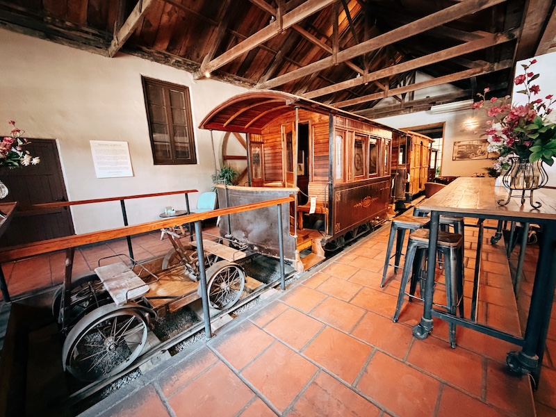 Por fim, o Café La Panadería ocupa a antiga padaria da fazenda, onde no passado se produzia o pão para os trabalhadores e suas famílias. O forno original, utilizado naquela época, foi preservado e ainda hoje faz parte do espaço, reforçando a ligação direta com o cotidiano da antiga hacienda. Ao lado, é possível ver também parte da chamada “locomotiva de sangue”, como era conhecido o antigo sistema de transporte interno da propriedade, puxado por cavalos, que cruzava toda a fazenda e se conectava às principais linhas ferroviárias do Chile. Hoje, esses elementos ajudam a compreender a dimensão histórica e logística da antiga fazenda, integrados de forma natural à experiência do visitante.