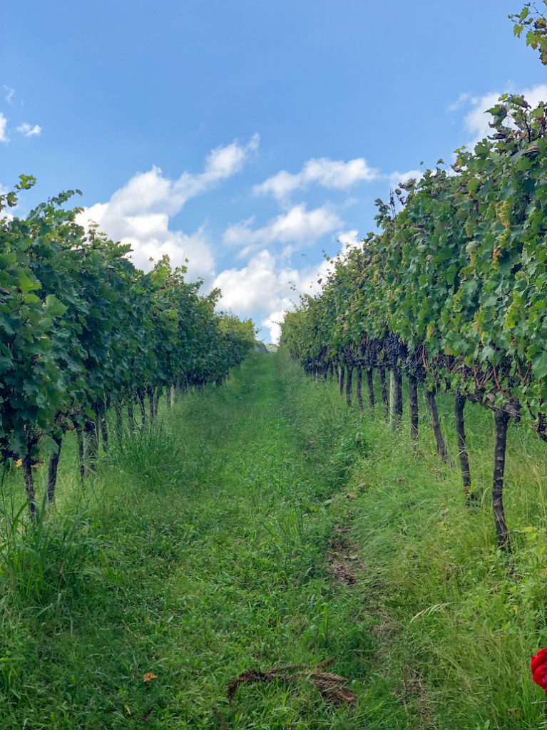 Nosso tour pela vinícola começou às 15:00h em ponto. Primeiro conhecemos uma parte dos vinhedos que ficam ao lado do prédio principal (eles também possuem mais videiras plantadas em outras cidades do Rio Grande do Sul).